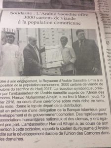 Solidarité : L’Arabi saoudite offre 3000 cartons de viande à la population Comorienne #LABEKA | Bogo city de Moroni.